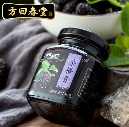 天猫商城:中华老字号,方回春堂 高浓缩桑椹膏180g 下单2件双重优惠后新低¥29.8元包邮,折合¥14.9/瓶新低价,同款京东¥42 以黑养黑,溢出年轻奥秘~