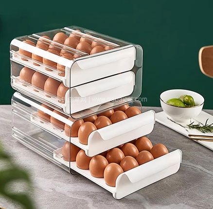 天猫商城:USAMI 日本进口 双层抽屉式鸡蛋保鲜收纳盒32格 现¥39.9,领¥10优惠券,券后新低¥29.9元包邮 鸡蛋保鲜时间更长~