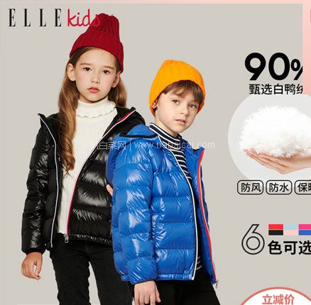天猫商城:ELLE Kids 儿童轻薄羽绒服外套(110~160码)多色 凑单¥1.1数据线 双重优惠后新低¥130元包邮 2020秋冬新款,防风保暖性能佳~