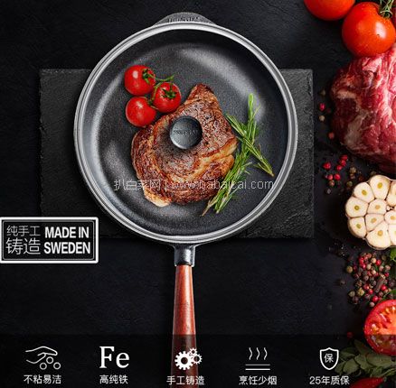 天猫商城:Skeppshult 斯肯特 铸铁家用无涂层不粘煎锅 28cm 双重优惠后¥399元包邮 瑞典皇室御用,锅壁厚,油烟少,耐磨耐用~
