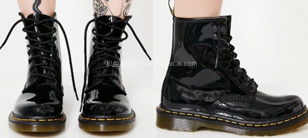 Dr.Martens 的首款设计就是8孔1460款,它那实而不华的设计,尤其鞋边黄色针步及独特的鞋印图案,当年大获好评,所以顺理成章推出市场,并成为了不同年代的潮流文化标记。这款Dr. Martens 马汀博士 女式 1460 漆皮军靴 有8孔系带和圆形的鞋头设计,用不同的黄色针线缝制而成,鞋子上部分和鞋底都是热密封的,缝在一起是为了更加耐用。靴子采用了品牌的鞋跟和舒适的气垫鞋底,提供了极佳的舒适度。