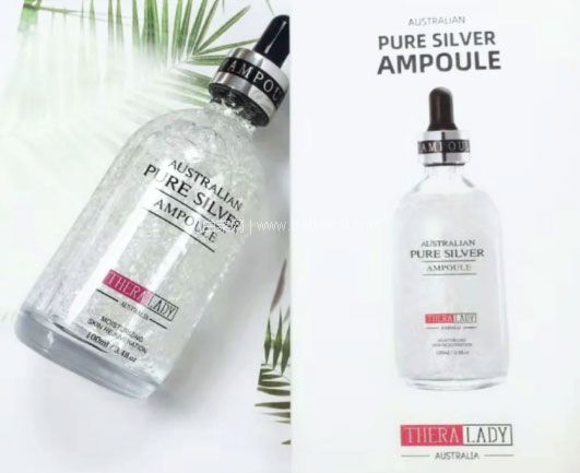 Thera Lady 纯纳米银安瓶面部精华液(修护、改善暗沉、祛黄、提亮)质地轻盈细腻,富含的AG+纳米银、烟酰胺、透明质酸、五胜肽、玉兰花和龙胆根等珍贵成分能快速渗入肌肤深层,保湿抗氧化,滋润修护肌肤。补充细胞水分和养分,激活肌肤细胞生成胶原蛋白,令肌肤恢复饱满弹性,获得抗皱紧致、美白淡斑、祛黄亮肤、保湿滋润效果。长期使用,使肌肤紧致润泽,恢复活力与弹性。