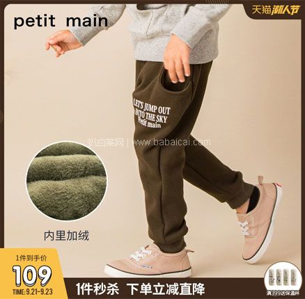 日本超高人气童装品牌,A类标准面料,内里加绒,舒适保暖,字母/条纹装饰,运动时尚。目前这款哈伦裤天猫商城petitmain童装旗舰店售价¥129,下单立减¥20,还可叠加¥30优惠券,券后实付¥89包邮,4色可选,90~140cm基本尺码齐全, 天猫商城购买地址>>