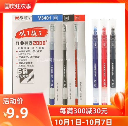 天猫商城:晨光 大容量一体式全针管中性笔 12只 三色可选 现¥9.9元,领¥2元优惠券,券后¥7.9元包邮 磨砂笔握,舒适防滑,量足好写~