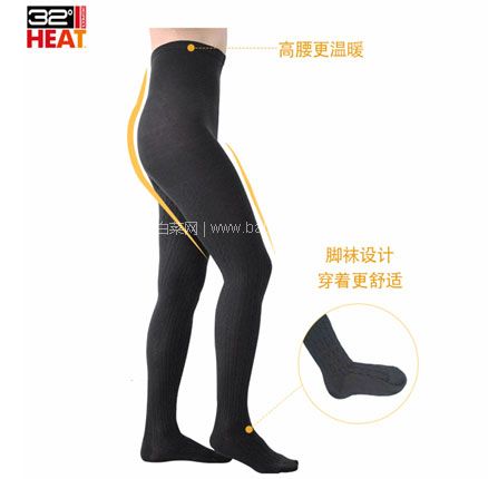 美国32 degrees heat 女士高腰蓄热针织人字纹连裤袜,精选复合科技纤维搭配羊毛面料,更轻薄保暖,环保耐磨,保暖蓄热,吸汗排气,双层高腰暖宫,短绒护膝驱寒,人字纹压力感3D设计更显瘦,不变形,不起球,不退色,修身显瘦,一步到位。