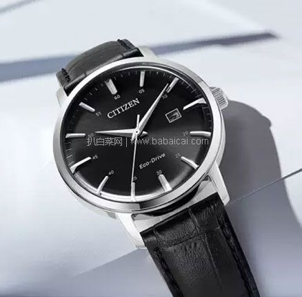 这款Citizen 西铁城 BM7460-11E 男士光动能手表,采用拉丝不锈钢表壳,小牛皮表带,黑色表盘搭配银色时标,3点位置日历窗口,表盘直径40mm,厚10mm,矿物玻璃镜面,内部采用光动能机芯E111,吸收日常可见光作为能量来源,终身无需更换电池,50米防水。