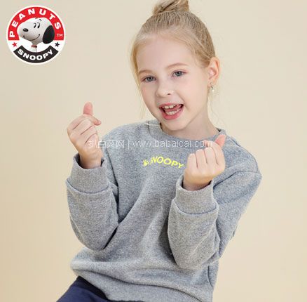 天猫商城:Snoopy 史努比 男/女童卡通加绒卫衣套装 100-105cm 现¥69.9,领¥40优惠券,券后新低¥29.9元包邮 柔软亲肤,御寒保暖~