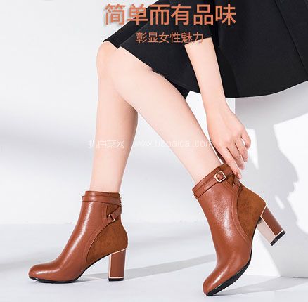 天猫商城:红蜻蜓 女款加绒保暖 韩版粗跟真皮短靴 2色 现¥259,领¥50优惠券,券后¥209元包邮 简约不失优雅;显瘦更显腿长~