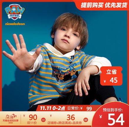 天猫商城:Paw Patrol 汪汪队立大功 2020新款 男童条纹撞色连帽卫衣 105-140cm 现¥99,领¥40优惠券,券后¥59元包邮 单穿内搭都超赞!