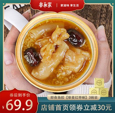 天猫商城 参和家旗舰店参和家 鲜炖代餐红枣藜麦花胶 150g*3盒,售价¥99.9,叠加¥40优惠券,券后实付¥59.9包邮到手。 固形物含量大于60%,鲜炖代餐,滋补美颜。天猫商城购买地址>>