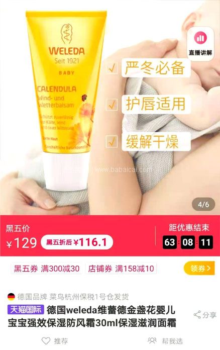 考拉海购内部折扣店:薅羊毛!Weleda维蕾德儿童金盏花滋润面霜 含税到手仅¥32左右 超级便宜,身体按摩油也好价!
