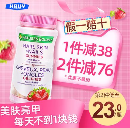 天猫商城:白菜价,Nature’s Bounty 自然之宝 女士复合维生素软糖(草莓味)40粒 双重优惠后¥25元包邮包税 嚼一嚼,摆脱亚健康,释放活力美~