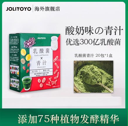这款 日本 JOLIYOYO 乳酸菌青汁粒 3g*20包,精选日本九州产大麦若叶、萃取21种蔬菜精华成分,共分解成75种植物酵素,吸收更快,美容养颜,再添加300亿活性益生菌成分,改善肠道生态平衡,减轻肠道负担。每天一包,畅享轻松。酸奶口味,更易入口。