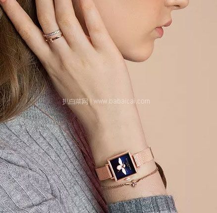 目前这款女表亚马逊海外购特价602元,可免费直邮,仅需税费¥55,直邮含税到手¥657,Olivia Burton最经典和热卖的小蜜蜂款,玫瑰金离子镀方形表壳+米兰编织表链+午夜蓝表盘,22.5mm表盘中央立体蜜蜂造型,文艺复古又时髦度不减。同款天猫旗舰店售价¥1690。亚马逊海外购购买地址>>