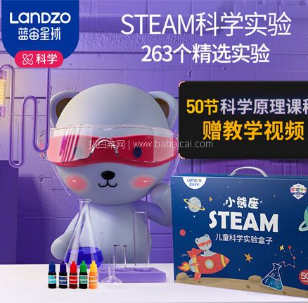 天猫商城:LANDZO 蓝宙 儿童趣味科学小实验套装 153个实验+护目镜+故事绘本 券后史低¥39元包邮 提高孩子专注力,创造力~