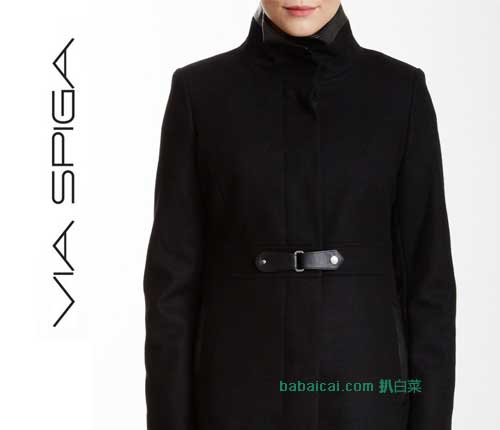 这款Via Spiga Women's Funnel Neck Wool Coat with Leather TrimVia Spiga 羊毛呢 女式大衣,顾客评价都是很时髦,做工精致。比较有特色的是带按钮漏斗形领口,十分适合脖子长的美女。60%羊毛+40%其他材质混纺面料,隐藏式按钮前襟,带腰带修身裁剪,版型挺括,领口、袖口及口袋人造革装饰,相当有气质的款式。