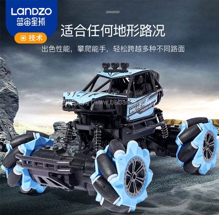 这款LANDZO 蓝宙 无线遥控四驱越野攀爬车,采用耐摔材质外壳,坚固耐玩,弹簧轮胎由18个可滑动小轮子组合成型,适合任何地形路况,45°斜坡也能轻松爬上,支持全方位特技漂移,360°炫舞模式,可原地漂移打圈,避震弹簧设计,减少行驶颠簸,2.4G无线技术,远距离遥控,信号稳定,不受干扰,内置大容量充电锂电池,持久续航。