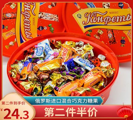 天猫商城:俄罗斯进口 混合巧克力糖果新年礼盒 450g 双重优惠后¥23.6元包邮 多种美味,多种品尝,送人自用都不错~