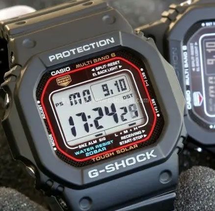 Casio GWM5610-1卡西欧 六局太阳能电波表,属于G-Shock系列,是卡西欧最经典的GW5600J的延续,外观德味,功能强大,价格实惠,佩戴亮骚,因而倍受追捧。在各种 大片中出镜无数,也是卡迷必收的款式之一,方正的表盘+红圈是它的经典标志。能够电波接收(中、日、德、英、美)6局电波并自动ac校正时间功能,太阳能 供电系统,具有自动背光、防震、200米防水、世界时间(48个城市)、秒表(精确到1/100秒)、4个闹铃等功能。是户外爱好者强大且必要的工具之 一。