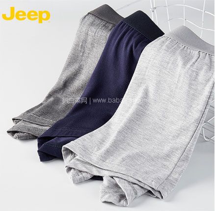 JEEP品牌,男人优选,纯棉面料拒绝瘙痒闷热,AAA抗菌内档,健康透气,舒适加倍。活性印染不掉色,零感无痕,舒爽透气,无侧缝剪裁,3D立体囊袋设计,更符合男性健康标准,穿得更放心。