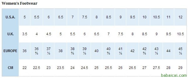 哥伦比亚女士鞋码,参加下面尺码表,注意对照USA与EUROPE欧码