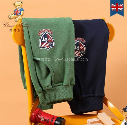 ClassicTeddy(精典泰迪)2002年起源于英国, 这款Classic Teddy 精典泰迪 儿童运动裤,采用精梳棉面料,细密厚实,柔软舒适,加厚不臃肿,罗纹脚口、松紧腰带,贴身防风,不勒肚肚。