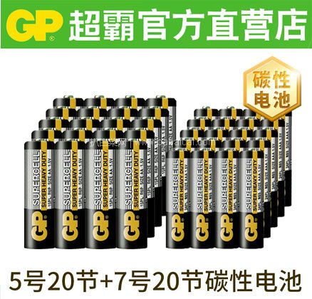 天猫商城:GP 超霸 碳性电池 5号/7号40粒 现¥19.9,领¥3元优惠券,券后¥16.9元包邮 非常划算~