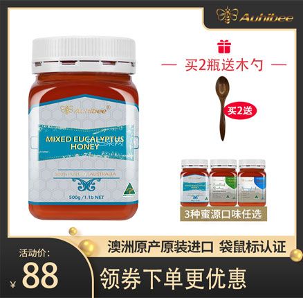 天猫商城:澳洲原装进口 Auhibee 澳碧 混合桉树蜂蜜500克 / 澳碧 山龙眼蜂蜜 500克 券后新低¥48元包邮 唇齿留香,回味悠长~
