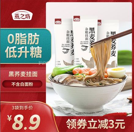 作为减脂代餐不错!低盐0脂肪,不含白面粉。天猫旗舰店售价¥13.9,下单立减¥2,领取¥5优惠券,实付¥6.9包邮,0脂肪,不含白面粉,黑小麦粉+荞麦粉科学配比而成,高饱腹高膳食纤维,不长胖,代餐主食任性吃!天猫商城购买地址>>