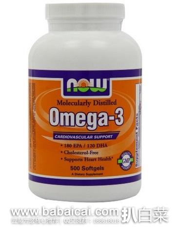 NOW Foods Omega-3, 500 Softgels 诺奥深海鱼油软胶囊500粒,相对来说价格便宜得多,自己吃比较划算,每粒含鱼油1000mg,所用鱼油来源于秘鲁出产的沙丁鱼、凤尾鱼及马鲛鱼。经过高真空分子蒸馏处理,既保证了鱼油的高纯度,又最大限度地减少杂质的存在。