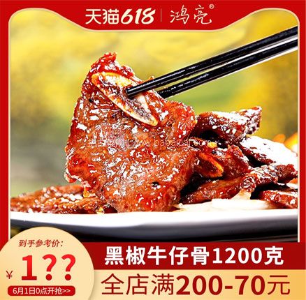 天猫商城:新鲜黑椒牛小排牛仔骨整块 200g*6袋+凑单品 双重优惠后¥120.1元包邮 肉质肥嫩,细嫩爽口~