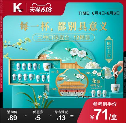 天猫商城:肯德基&故宫博物院 KCOFFEE闪冲花神咖啡礼盒(内含花开呈祥杯) 券后¥79元包邮 “开、倒、搅”就可轻松拥有一杯口感醇厚的好咖啡~