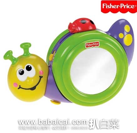 这款Fisher-Price Go Baby Go! 1-2-3 Crawl Along Snail小蜗牛是一款鼓励宝宝爬行的玩具,颜色鲜艳, 造型设计线条圆滑,按下按钮,小蜗牛会边滑行边唱歌,吸引宝宝向前爬行,有助于促进婴儿的生理发育,小蜗牛可以前后摇晃,更添乐趣,蜗牛壳侧面带有镜子, 可以让宝宝认识自己,需要2节5号电池驱动。适合3-36个月的宝宝。
