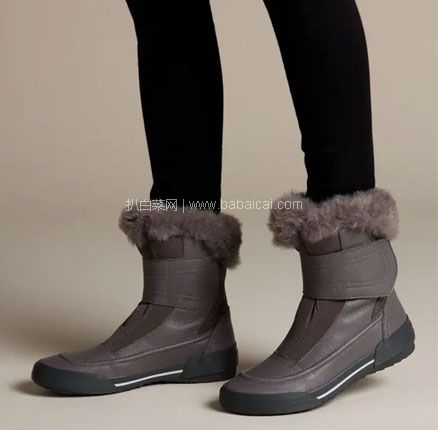 亚马逊海外购:Clarks 其乐 Gilby Merilyn 女士真皮拼接毛绒雪地靴 US6码,直邮含税到手¥223.43 反季好价,黄金尺码~