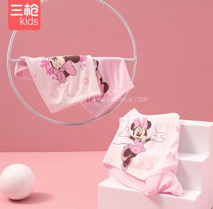 三枪 女童纯棉内裤3条装,A类标准,婴幼儿A类特柔棉,细腻柔软。透气亲肤,健康贴身;弹力宽边腰头,呵护宝宝的小肚子;裆部100%棉双层呵护,健康印染工艺,可爱米妮造型,萌化公主心。