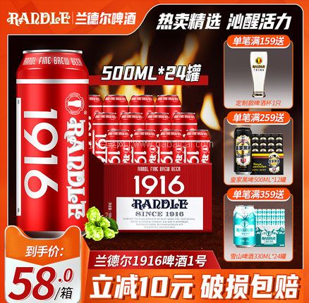 天猫商城:兰德尔 经典1916 德国风味1号啤酒 500ml*24听 券后¥53元包邮已关闭评论 0