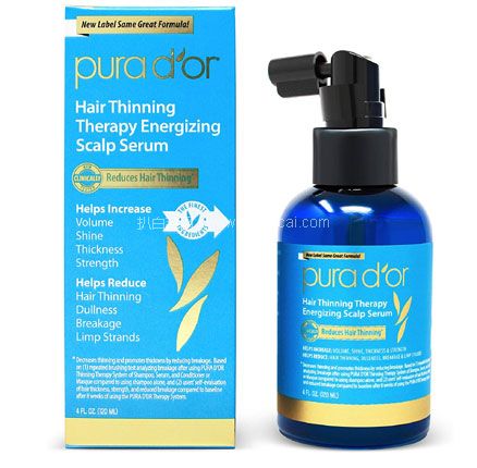 PURA D'OR的防脱发洗发水产品是美国热门的洗发护发产品,这款PURA D'OR Hair Loss Prevention Therapy Energizing Scalp Serum生发精华 120ml含咖啡因、茶树及多种纯天然植物籽油成分,能够有效渗透头皮,滋养受损头皮,减少头皮痕痒症状,唤醒休眠毛囊,促进头皮健康,防止脱发、掉发,告别脱发烦恼。
