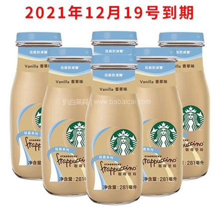 京东商城:临期低价,Starbucks 星巴克 星冰乐 281ml*6瓶 现¥89元,叠加¥40元优惠券,券后新低¥49元包邮 在家也能喝到纯正的星巴克咖啡~