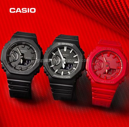 CASIO 卡西欧 GA-2100-1AER 男士石英表,延续了G-SHOCK开山之作DW-5000C的经典外形,碳核心防护构造,结合了树脂的轻量和金属的硬度,极酷炽黑八角形外观,彰显个性与力量感,采用石英机芯,矿物强化玻璃表面,橡胶表带,防水200m,适合日常休闲时佩戴。这一系列G-SHOCK和BABY-G非常适合送礼和作为情侣佩戴。