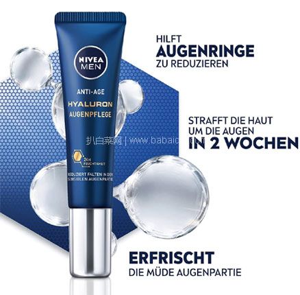 亚马逊海外购:白菜!Nivea 妮维雅 男士玻尿酸锁龄抗皱男士保湿眼霜 15mL ,直邮含税到手¥50.02 眼部重新焕发健康、年轻的光彩~