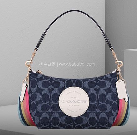 亚马逊海外购:Coach 蔻驰 DEMPSEY 女士半月腋下包单肩包 1件9折,免费直邮含税到手 ¥1032.4    牛仔帆布印花, 彩虹肩带,好看~