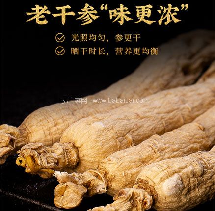 • 好参适合送人!绿润堂 长白山野山参 6年干人参 100g/约30根 券后¥39.8元包邮