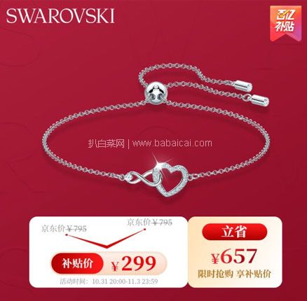 京东商城:Swarovski 施华洛世奇 INFINITY 永恒爱意手链 5524421 到手史低¥299元包邮 低过海淘低价!
