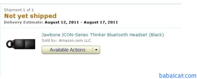 可以看到刚才下单购买的Jawbone蓝牙耳机尚未发货(Not yet shipped)