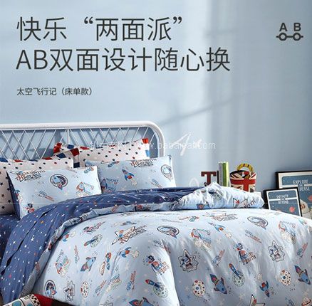 天猫商城:梦洁宝贝 儿童纯棉床品三件套/四件套 太空飞行 1.2~1.5米 多花色可选 到手¥169元起包邮 0点限时低价,赠抑菌免洗手喷雾!