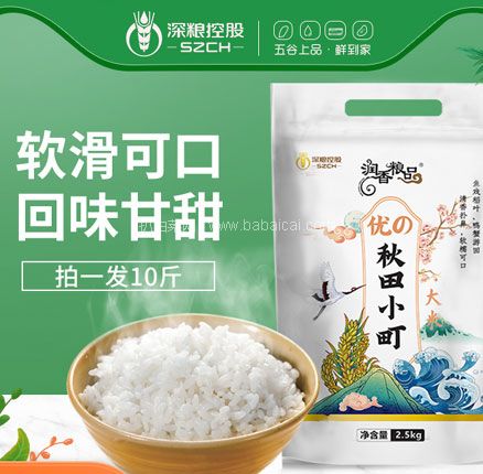 天猫商城:深粮 秋田小町东北大米 2.5kg*2件 到手低至¥39.9元包邮 粒粒香醇饱满,劲道十足口感佳~
