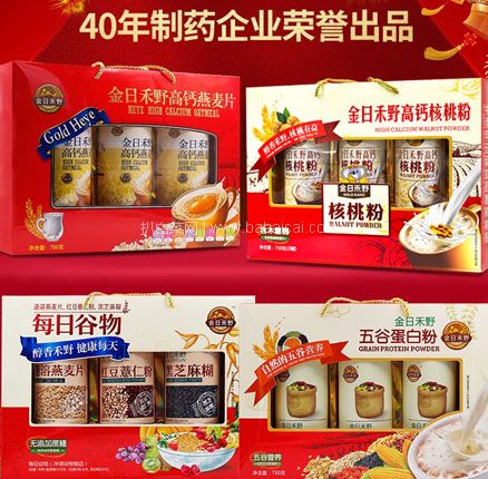 天猫商城:金日制药监制,金日禾野 中老年无蔗糖每日谷物三合一礼盒装 约重5斤 双重优惠新低¥39.1元包邮 线下商超同款,适合送礼, 厚重大气