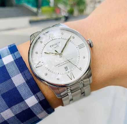 这款Tissot mens Chemin Des Tourelles Stainless Steel Dress Watch 天梭 杜鲁尔系列 男士钢带自动机械手表 T099.407.11.033.00,采用POWERMATIC 80.1 11自动机械机芯,动力储存80小时。巴黎饰钉纹外圈搭配太阳纹设计,犹如一枚宝石嵌入腕间,大气表盘,彰显沉稳与活力。剑型针,锐气硬朗,罗马数字/条形刻度,立体复古时标,12点处带有日期显示。人造蓝宝石玻璃表镜,明亮通透硬度高,耐腐蚀抗磨损。全透镂空表底,机芯走时工艺一览无余。精钢表带搭配蝴蝶表扣,防滑硬朗,佩戴便捷。表盘直径42mm,厚度10.89mm,支持50m防水。