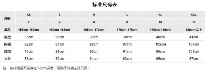 Tommy Hilfiger 汤米·希尔费格 女外套尺码表: