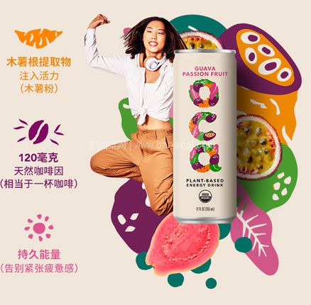 OCA 热带水果味0糖0卡果汁气泡饮料 355ml*6罐,甄选亚马逊雨林天然植物能量——木薯根提取物,搭配植物咖啡因,以温和且长效的方式提供活力能量;全天然能量来源获得非转基因认证和USDA美国农业部有机认证。